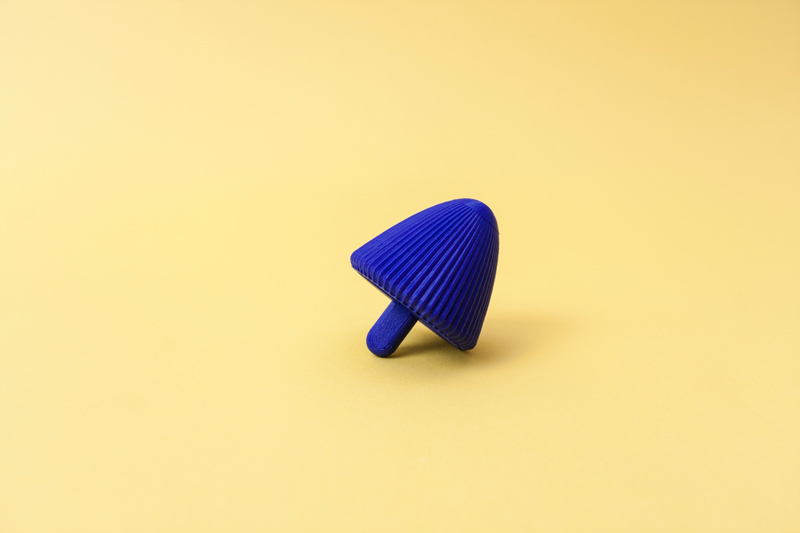 Spin&Relax is a set of three minimalistic spinning tops with a simple base to hold them on while they are resting.